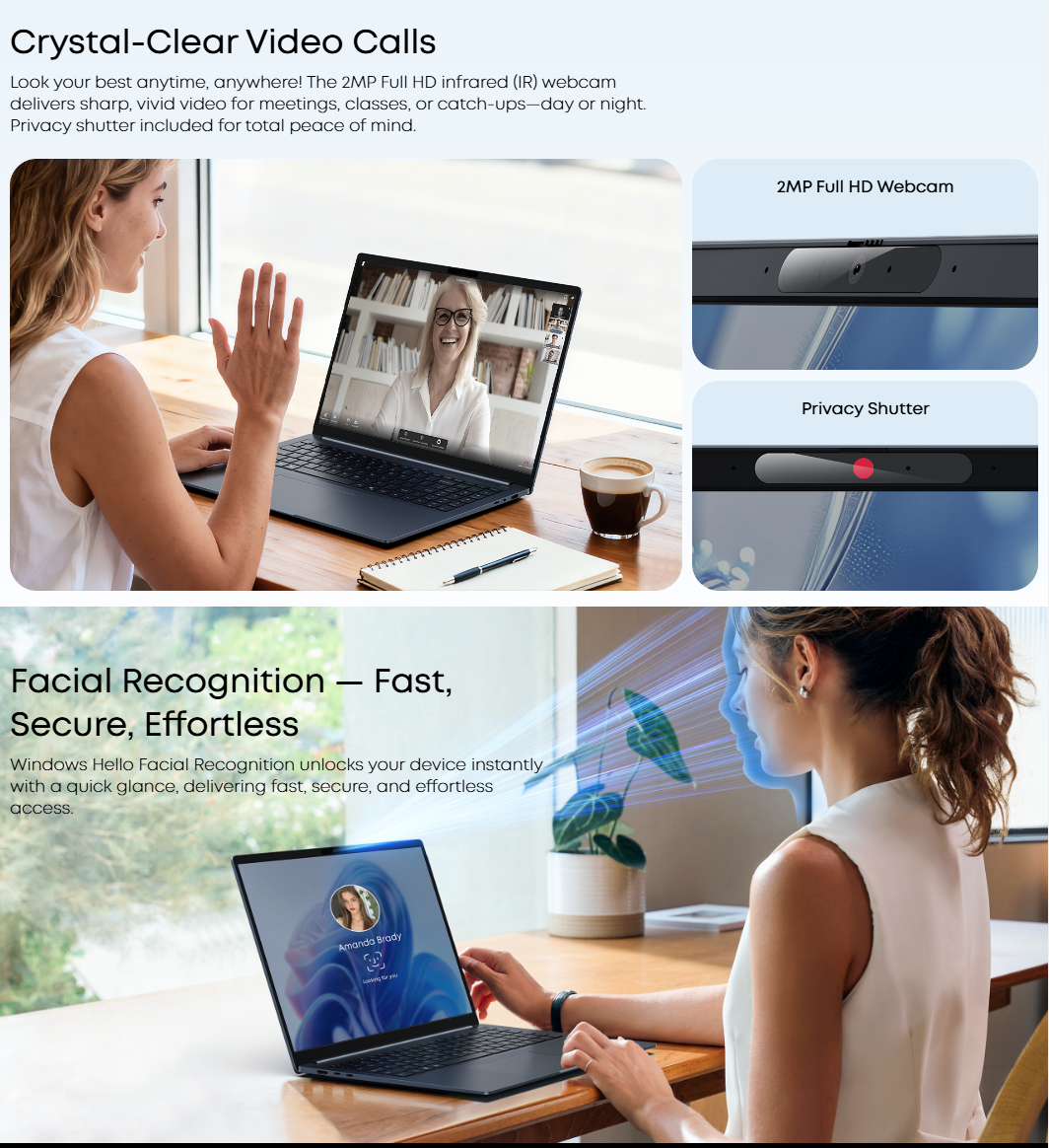 2 MP IR Camera with Dual Microphones (Supports Facial Recognition Login)